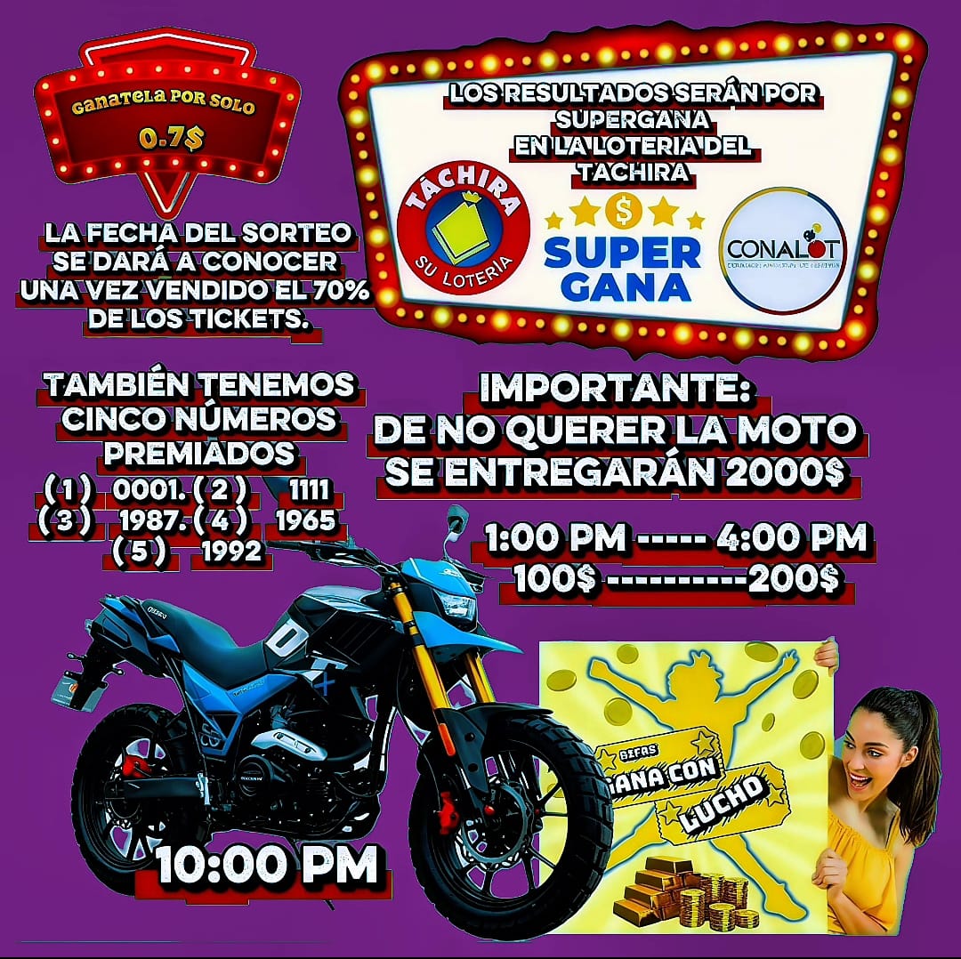 Si ya realizaste tu compra y fue verificada, revisa aquí tus boletos asignados. Recuerda: el sorteo se hará al vender el 70% de los boletos. Si el ganador no quiere la moto Bera DT, recibirá $2000 USD a tasa BCV. ¡Mucha suerte! 🍀